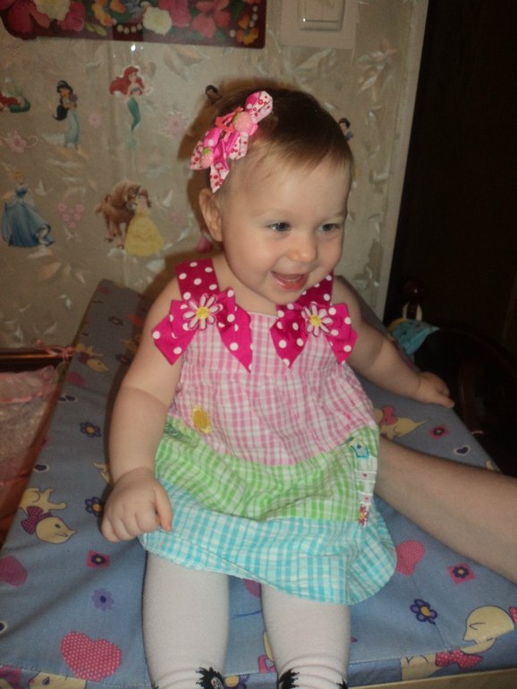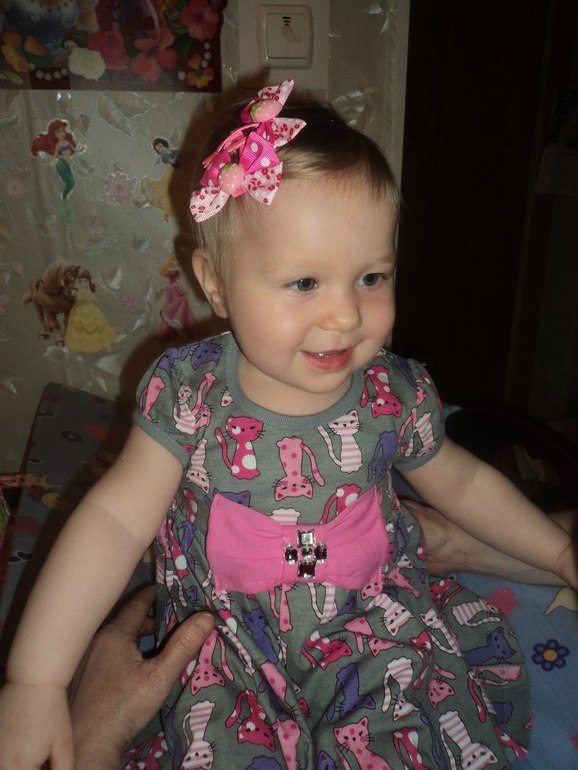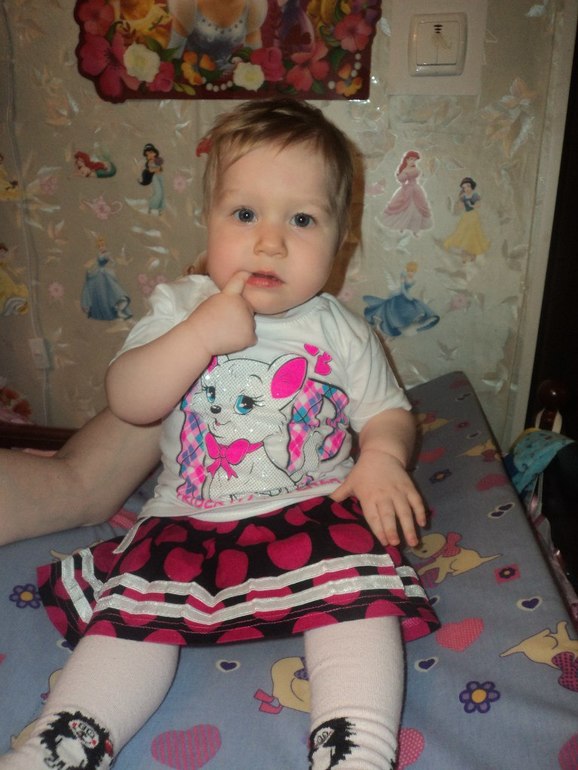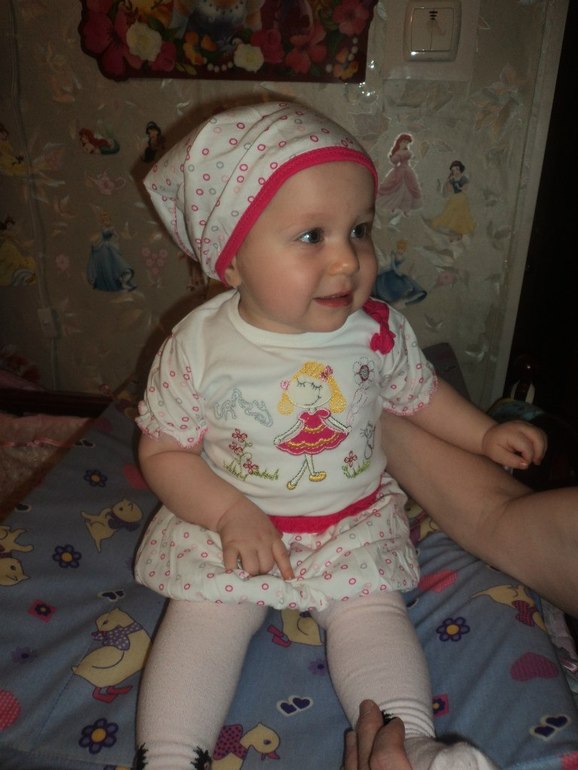 быстро садится из любого положения, встает на коленки держась за бортик кровати. Ходить пока не хочет. Научилась хлопать в ладошки. Показывает глазки и носик у игрушек. Любит рассматривать книжки и слушать их. С интересом смотрит мультики.Говорит что то на своем языке. Четко говорит мама, папа, баба,Вова,дай. Не можем приучить ее кушать твердую пищу. Как только попадает кусок в рот, сразу давится до рвоты...Жевать отказывается. Держать бутылку не хочет, хотя умеет. Из чашки-поильника пить не хочет, а из простой чашки пьет с удовольствием (держу чашку конечно я). В ходунках долго находиться не любит. На даче повесили прыгунки. Ребенок в восторге, прыгала в них полчаса. Последние дни и ночи капризничает, скорее всего от зубов. Из игрушек любит разбирать пирамидки,, перебирает яйца от киндера с разными наполнителями, кидает мячик, бросает игрушки на пол и наблюдает как мы их поднимаем и снова бросает)).Очень любит кукол(грызет ноги и руки). Любит качаться на качелях.