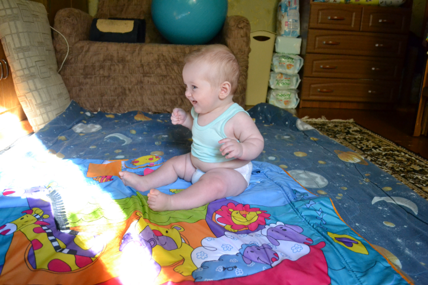 нет, не садится пока. Иногда сам плюхается, но сразу же переворачивается и ползет. Нормально сидит только если есть за что держаться. Может он в меня?)) я только в 9 села