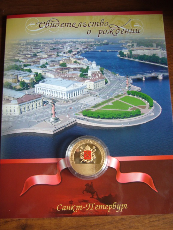 А еще получили почетную открытку и медальку, рожденных в Санкт - Петербурге (на медали надо будет написать имя доченьки, займемся на следующей недели этим!)