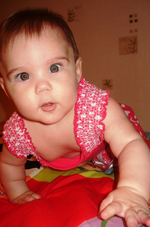 Физическое развитиеВот и нам полгодика уже! Опишу основные умелки и особенности) Завтра должны делать прививку, но скорее всего, не будем делать, кишечную инфекцию еще не вылечили, посмотрим, что анализы покажут... Вес и рост тоже будут известны позднее. Интересно, как детки меняются - родилась темной и голубоглазой, сейчас стала светлой и с глазами орехового цвета (в папу).