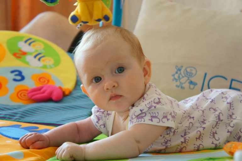 И еще: берем игрушки из маминых рук, иногда реагируем на свое имя, любим сидеть в стульчике для кормления (положение полулежа). Любим слушать как мама рассказывает стишки. Особенно "гуси, гуси" и "мишка косолапый". Это два спасительных стиха, которые помогают развеселить Викусю, если она капризничает.