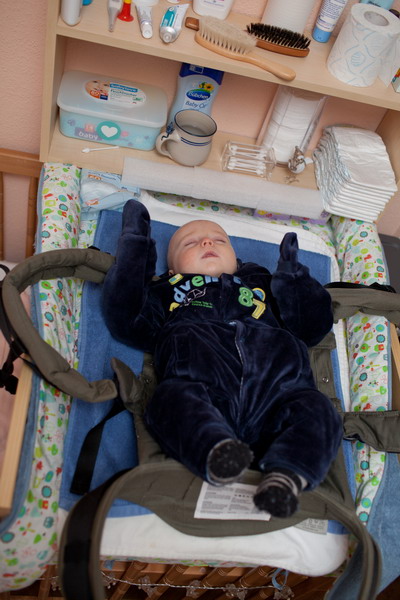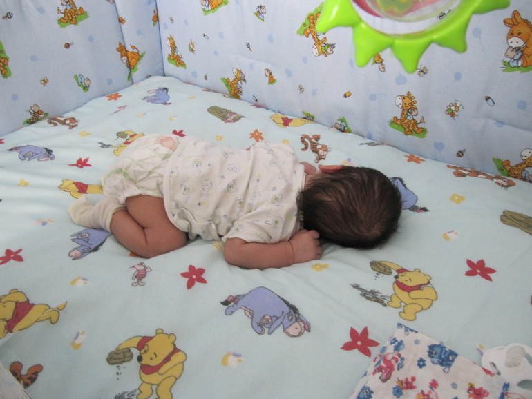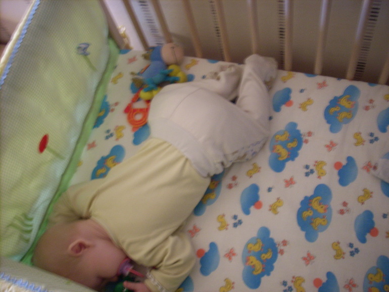 нам лишь бы на живот перевернуться) иногда ползет и скачет - бух и заснул) удобно ведь, укладывать не надо)))