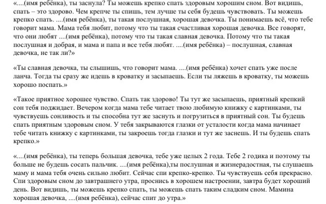 Уже спящему ребенку надо шептать подобный текст минут 10-15. Как ни странно, но работает!