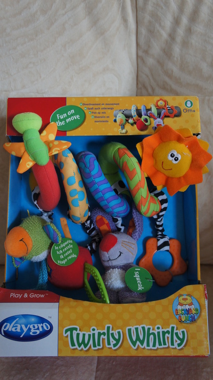 я вешаю игрушки на дугу и Ева отлично с ними играет, в рот пихает и лягушонка тоже))))))))))))))))))))))но больше всего мы любим львенка и дракошу, львенка за колокольный перелив, дракошу за большие глаза и шуршащие крылья: