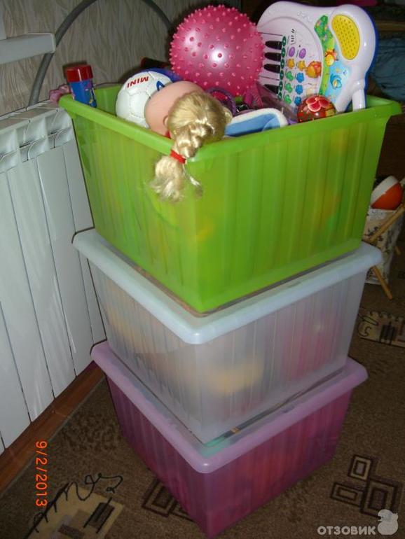 Сам короб очень объёмный, и наши игрушки, до этого покрывавшие все доступные горизонтальные поверхности в комнате, и казавшиеся мне нескончаемыми, не заняли в нём и 1/5 ))