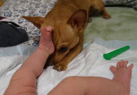 Живем мы в частном доме, но Круасан, по решению нашего семейного совета - будет домашней собакой, проживая именно внутри самого дома. Поскольку Лев Дмитриевич еще совсем маленький, то отношения у них еще не установлены, Льву не интересно, да и Круасану официального разрешения по доступу к ребенку не давалось. Характер игривый, но он очень ручной и ласковый. Наш папочка брал его приблизительно с такой целью:"Вот сын подрастет, будет кому уши откручивать". Не совсем ГРИН-ПИСовские цели, но это и шутка конечно. Просто хочется, что бы сын жил в окружении животного и с раннего детства не имел страх ни перед чем. А как вы относитесь к животным в одном доме с крохами?