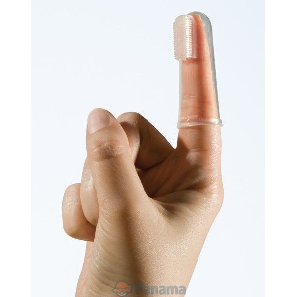 моему год и 4 мес, дает чистить только спереди, и тут же убегает, может помусолить сам, погрызть ее. у нас тоже 2 (как у вас и на палец - как на картинке ниже) тоже жду когда сам начнет чистить)))))))