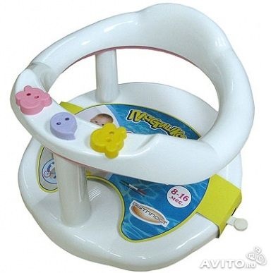 Нам почти 6 месяцев пока не сидим поэтому плавает в круге, как только сядет, у нас есть стульчик для купания