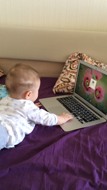Сегодня я заметила ребенка за таким занятием: он ныл-ныл, потом перевернулся на животик, достал до стоящего на кровати же ноута, подтянул его к себе и начал долбить по кнопкам, вроде как печатает :)))