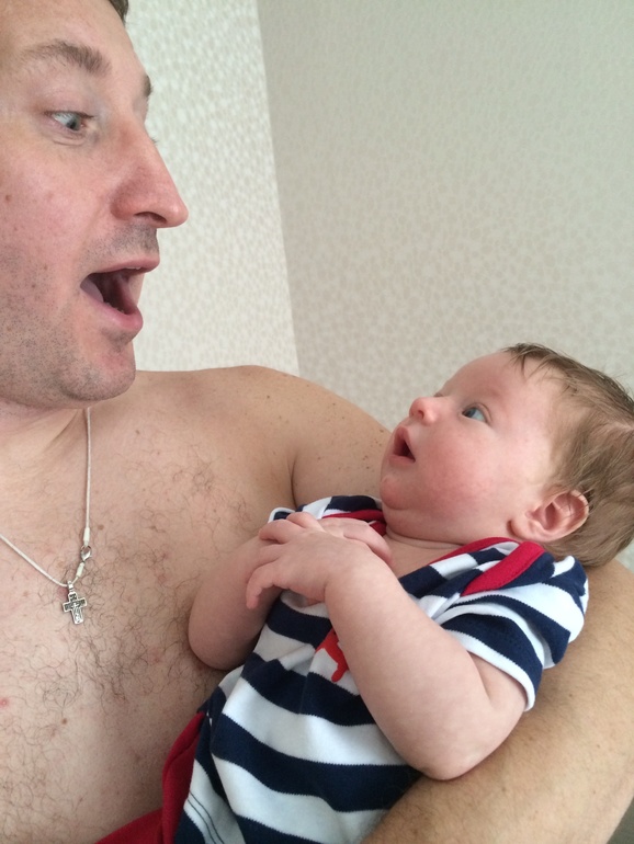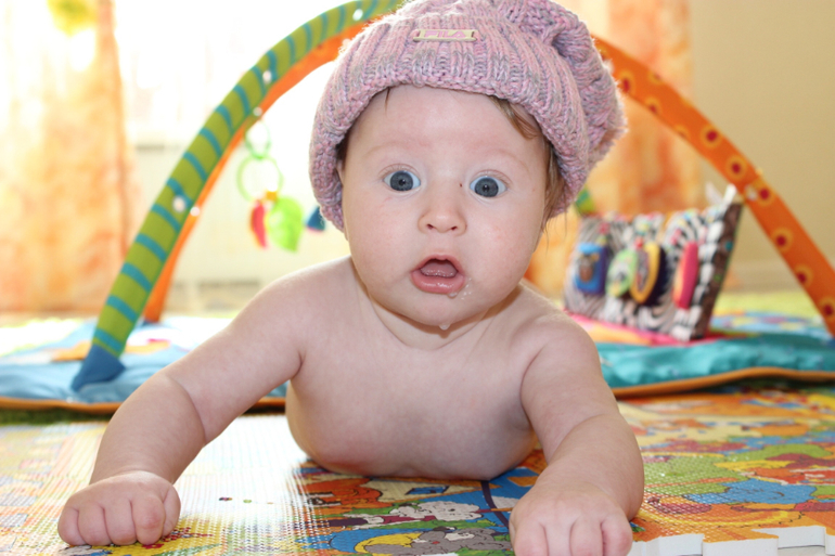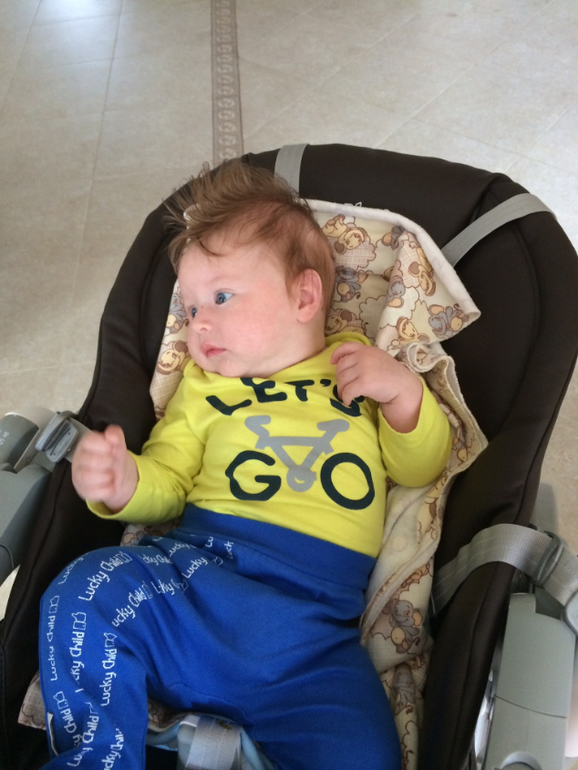 Самым главным достижением было, что Макксимка за 3 дня до трех месяцев перевернулся на животик и теперь делает это постоянно)), совсем не хочет на спине лежать. В 2,5 месяца стал тянуться к игрушкам и ближе к 3 месяцам раскрыл пальчики и уже осознанно хватает их и тянет в рот. Постоянно пытается сесть и строит при этом такую рожицу смешную))