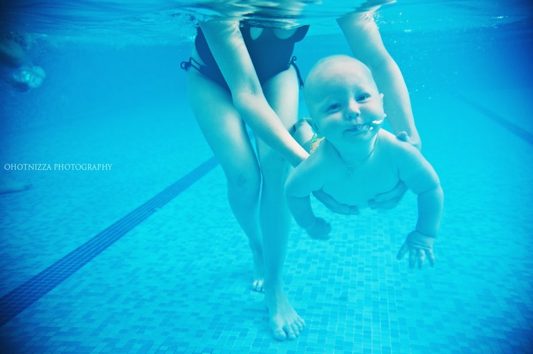 Но тут бассейн закрыли на лето и я начала поиски нового бассейна. Нашла в нашем же районе в помещении фитесс-центра. Занятие проходило в купели на 5 квадратных метрах. Инструктор (с видом- детей я не люблю, но надо зарабатывать на жизнь) несколько раз чуть не уронила Саню под воду, хаотично давала задания, меняя периодически требования на ходу. Уже с первых минут Саня напрягся и тут пришел черед ныряниям. Инструктор не разрешила нырнуть Саню мне (у них, мол, свой метод ныряния). Она дунула Саше в нос и, не дав вдохнуть!!!!!, резко начала кидать(по другому не скажешь) Сашу под воду. Малыш захлебывался, его реально топили!!! Я взяла на руки орущего ребенка, но инструктор попытался его забрать со словами- мы еще не закончили серию ныряний (и это с бьющимся в истерике грудничком). В общем, теперь мы ходим на самостоятельное плавание.