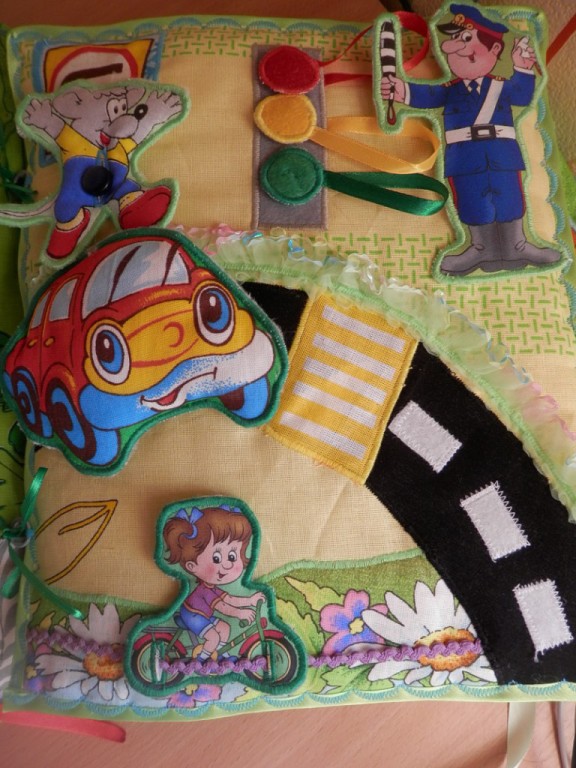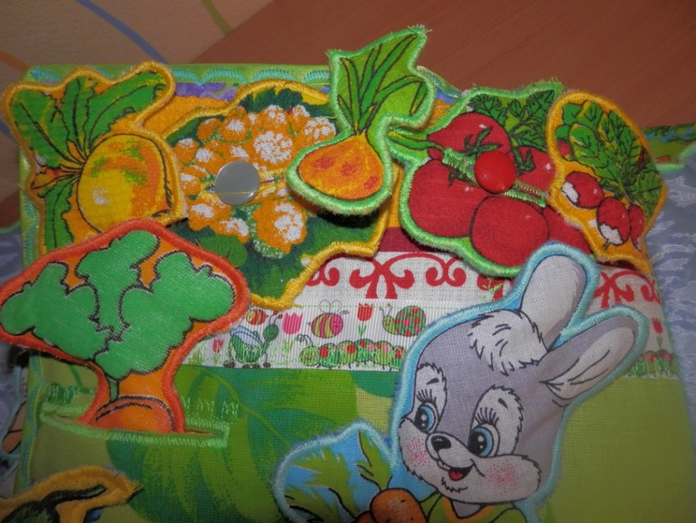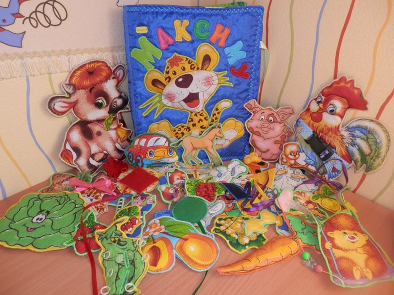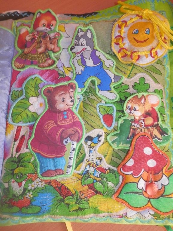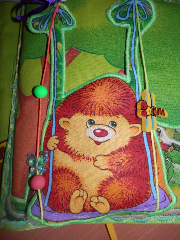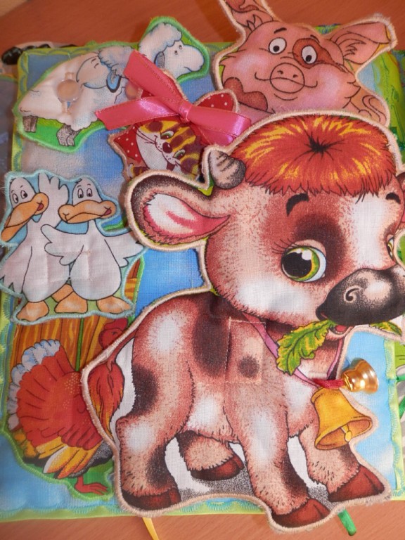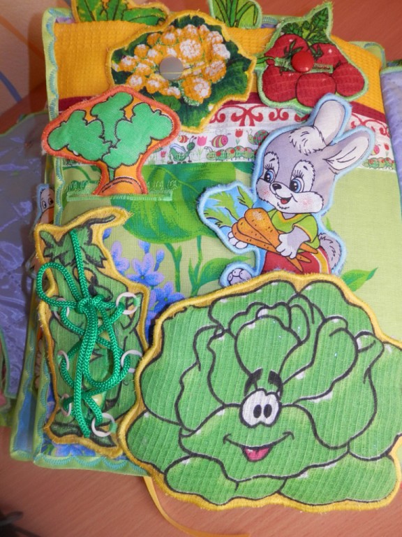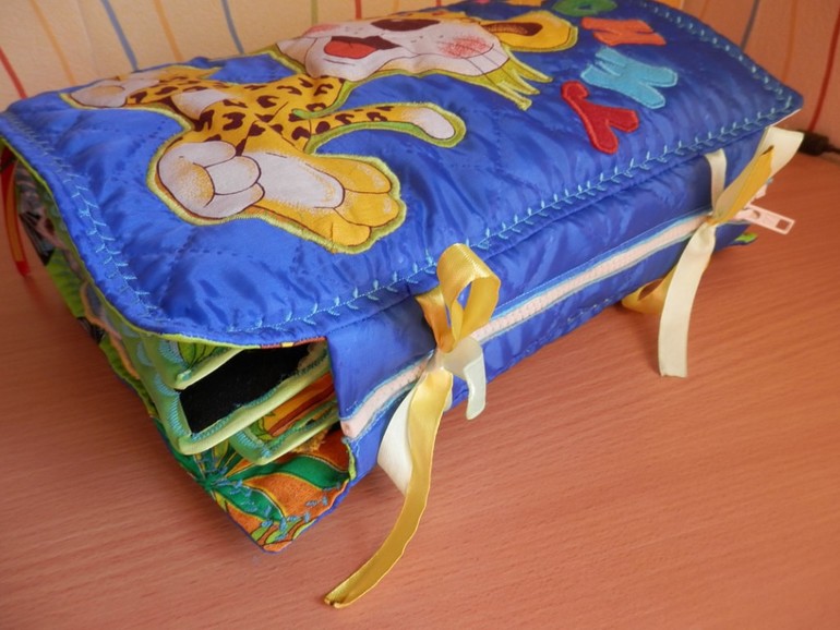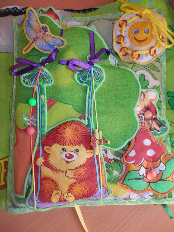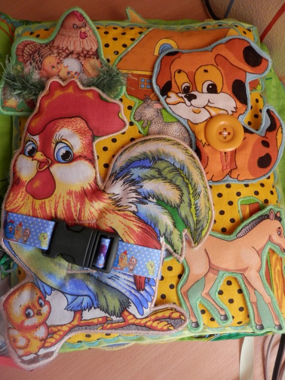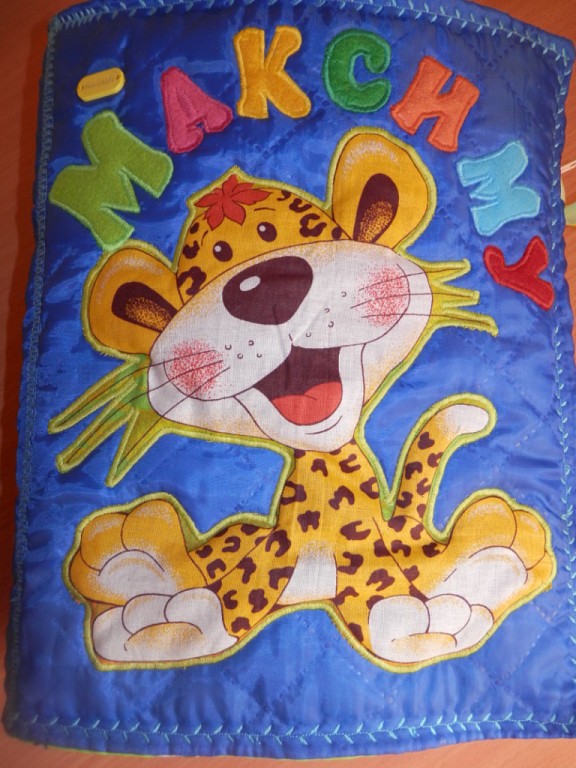 Вот такую книгу нам сшили на заказ.Максим пока попробовал все на зуб,но будем изучать.Все элементы на липучках.Что-то пищит,шуршит,растегивается и т.д.На фото конечно не то,в живую очень интересно.