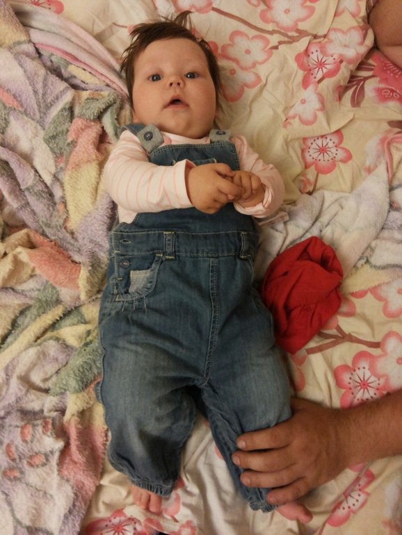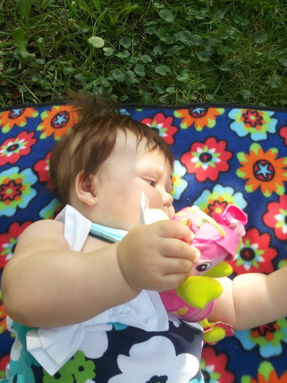 2. Поднимаем голову лежа на животе на вытянутых ручках (я этого долго ждала).