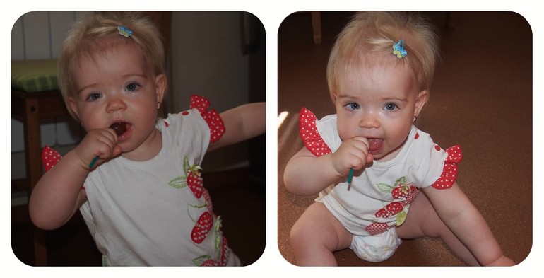 Спасибо! нет, чупик не грызем, конечно. Это она у меня отобрала, я дала посмотреть, что будет. А она его, как уже не первый раз, лизала, причмокивала)) Я пофотала и отобрала. Не даем. Может же разгрызть и там куски острые будут. По-любому рано.Насчет песка — это на даче. Так моя везде ползти ползет, все перебирает да в рот. Только соской затыкаю и не даю в рот пихать инородные предметы. А то как то камешек нажевывала, что пришлось силой доставать. Но вообще меня коробит, когда дети валяются, пачкаются, песок едят. Но это надо пережить, это возрастное. Только один понимать начал, эта в песке... Ну что поделаешь)