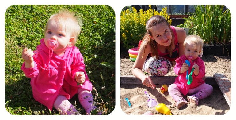 Поздравляем!!! А прическа все пышнее ..все гуще!! Уже чупик грызете?) В песочнице сидите, как к песку относится? Наша наотрез отказалась играть в песке(