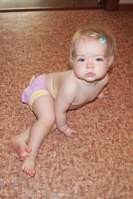 Кстати, сегодня обнаружила, что Юляша знает, куда надо выкидывать памперсы. Она все рвется к использованным свернутым подгузникам. Раньше я ей давала их посмотреть, пока одевала ее, а потом мы несли выкидывать - я Юльку, она памперс. Сегодня переодела ее и поставила на пол с памперсом в руках. Сказала: «Пойдем выкинем каку в мусор!» И она вела меня за ручку и привела на кухню прямиком туда, куда надо.