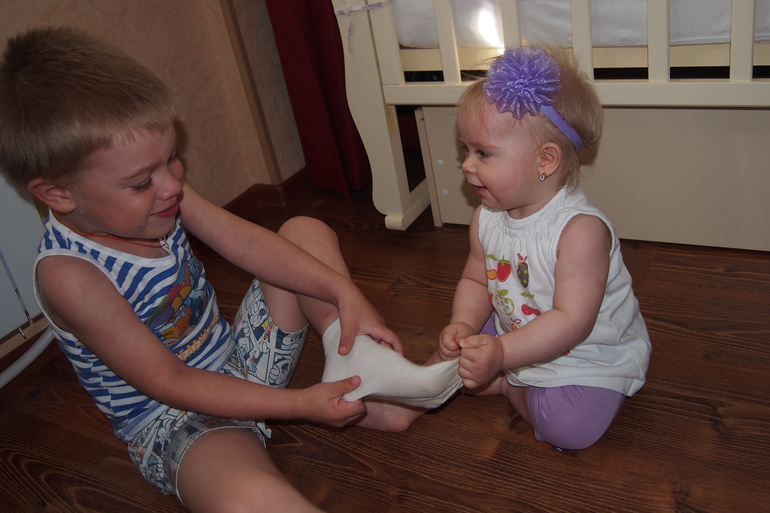 Очень быстро всему учится. Например, любила Тимку за волосы потрепать. Один день рассказывала, что нельзя обижать Тимошу, что он хороший, и показывала, как надо его гладить по головке. Так теперь ползет к нему и довольная гладит. Иногда забывается и снова треплет, но я ей акцентирую «Тима хороший» и она сразу гладит опять.