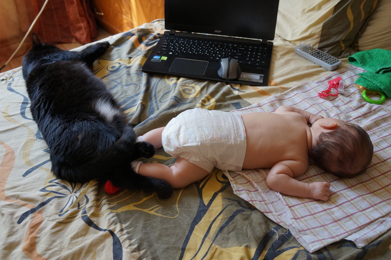 Это доченька подросла уже прилично, а первый месяц она вообще крошка была по сравнению с ним))