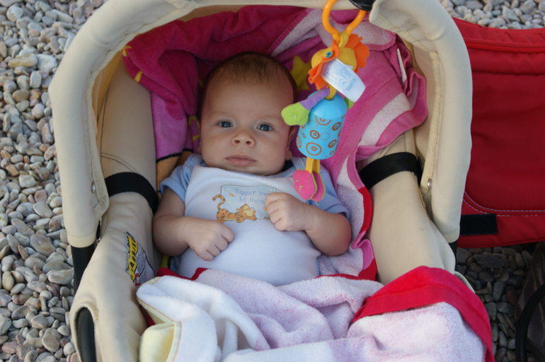 Нравится когда я его из положения лежа, за ручки подымаю в положение сидя.