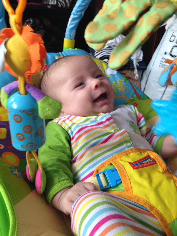 Больше всего общается со мной - когда я с ним разговариваю сразу расплывается в улыбке, хохочет, руками-ногами машет! ))