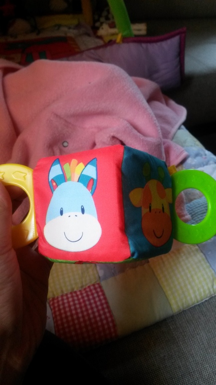 ИгрыПодарили нам новые игрушки, кубик и мячик. Яркие, веселые, на них вполне узнаваемые зверушки - лев, обезьянка, жираф и т.п. но есть один персонаж, которого я уже неделю не могу идентифицировать. Вот посмотрите, что это за неведомая зверушка (на фото слева)?