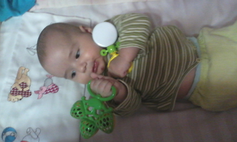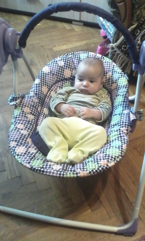 Моя прелесть весит уже 7 кг, рост 64 см. Улыбается и хихикает в ответ, если всунуть в руку погремушку, то будет рассматривать и играть с ней. На животике когда лежит. то старается ползать по пластунски, может перевернутся на бочек, а может и на спинку перекрутится, и со спинки на бочек тоже любит переворачиваться. Проявляет характер, если что то не по его, то об этом знают все соседи (орет- капец). Начал намного активней купаться, круг разлюбил, висит в нем как сарделька без действий, а без круга плюхается так, что мама не горюй. Спит 3-4 раза за день, и при этом один сон обычно долгий 2-3 часа. Спать ложымся по разному 10,11,12 и просыпаемся тоже по разному 8,9,10. При этом просыпаемся покушать в 3 и 6 ночи. Кушает ночью в спяшем режиме. Обожает играть с подушкой смайликом, смотреть на планшетку мультики, за всеми следит. Любит что б его носили на ручках показывали ему все и рассказывали.