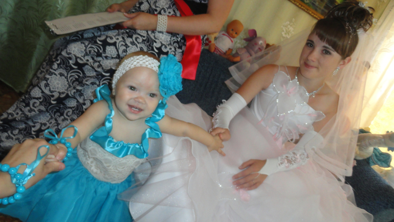 были на днях на свадьбе у племяшки мужа,довольно таки долго выдержала наша кроха прежде чем начала капризничать)