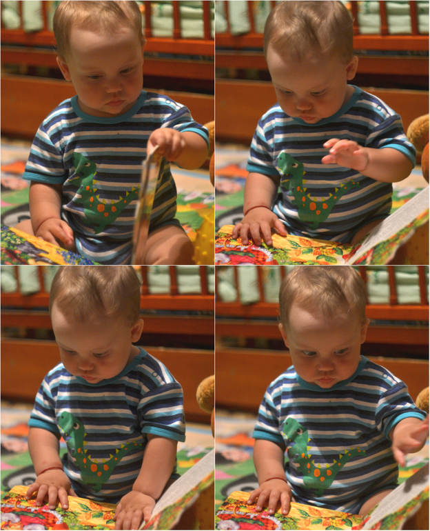 Также я стараюсь больше внимания уделять книгам. Их он любит, но опять же, все быстро надоедает, неусидчивый. Но картинки любит рассматривать.