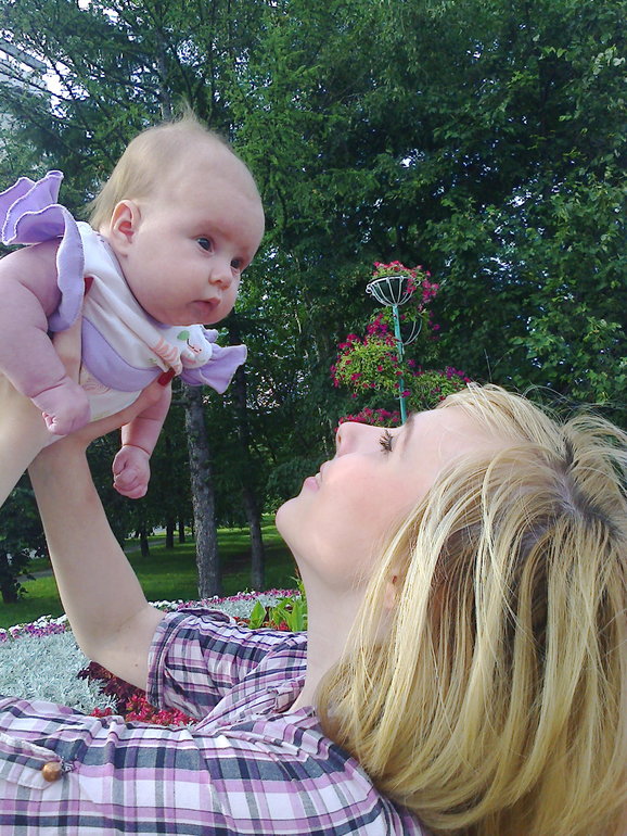 Настюшка не стала исключением. Недели за 2 до этой даты у моей малышки начал меняться режим. Мы ездили на дачу сначала к моему папе, потом к моей маме, и я списывала все это на свежий воздух (в Москве при всем желании находиться на улице больше 4-5 часов не получается, да и воздух тут далек от идеала, хоть и гуляем в парке). Но сейчас я поняла, что скорее всего воздух тут ни при чем, просто наконец-то пришло время. Настя 1 день покакала сама (вы не представляете, какое это счастье для меня, потому что мы с рождения живем с газоотводной трубочкой 2 раза в день), потом начала засыпать то в 1 ночи, то в 12, то в 11, то вообще в 10 (до этого раньше 2 ночи мы не ложились). То просыпалась ночью (для меня ночь, а для нормальных людей уже утром - в 6-7 часов утра) на кормление, то спала до 10-12 часов. 2 раза проспала всю ночь в люльке от коляски (заснула на улице, перетащили в дом, а она и не проснулась; а вообще у нас был где-то с 1 месяца вынужденный СС из-за коликов). Потом у нас появились проблемы с животиком - какала какой-то то ли слизью, то ли более плотными (хоть и жидкими) каками, с трудом проходящими через трубочку, в конце вообще с пеной. Приехали домой, я дала ей 2 дня по 1 пакетику Бифидобактерина, смешанного с моим молоком, и О ЧУДО! - она стала какать сама!!! И все это без единого признака беспокойства и болей в животике! Моему счастью не было предела! Никогда не думала, что буду так радоваться детским какашкам!)))) Но недолго музыка играла… Покакала она несколько дней сама и потом сделала перерыв на 3 дня. Сегодня я не выдержала и сделала ей все-таки газоотводку - а у нее, бедняжки, запор! Очень плотные каки (как очень густая каша что ли или даже плотнее), закупоривают газоотводку, не проходят, пришлось бегать мыть ее после каждого подхода. Очень много вышло. Бедняжка, она пыталась прокакаться, просто не могла! Вот теперь думаю, то ли это от Бифидумбактерина (что вряд ли), то ли от того, что очень жарко, а пить она отказывается. Посмотрим, что будет дальше…
