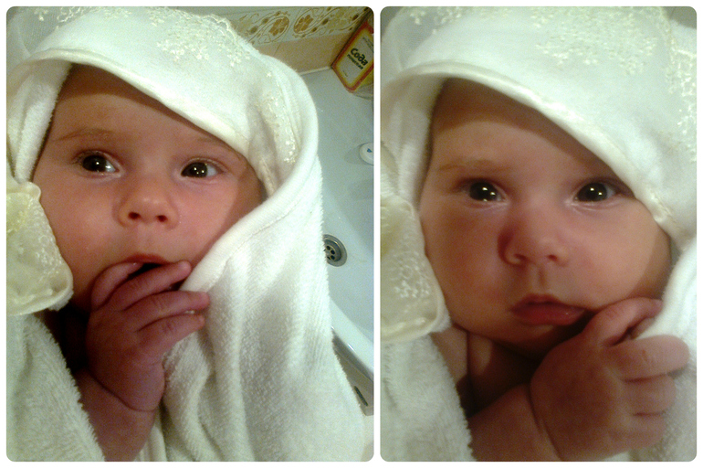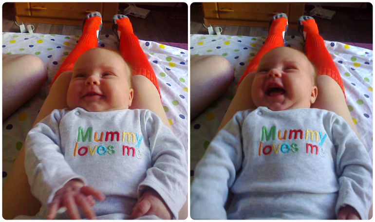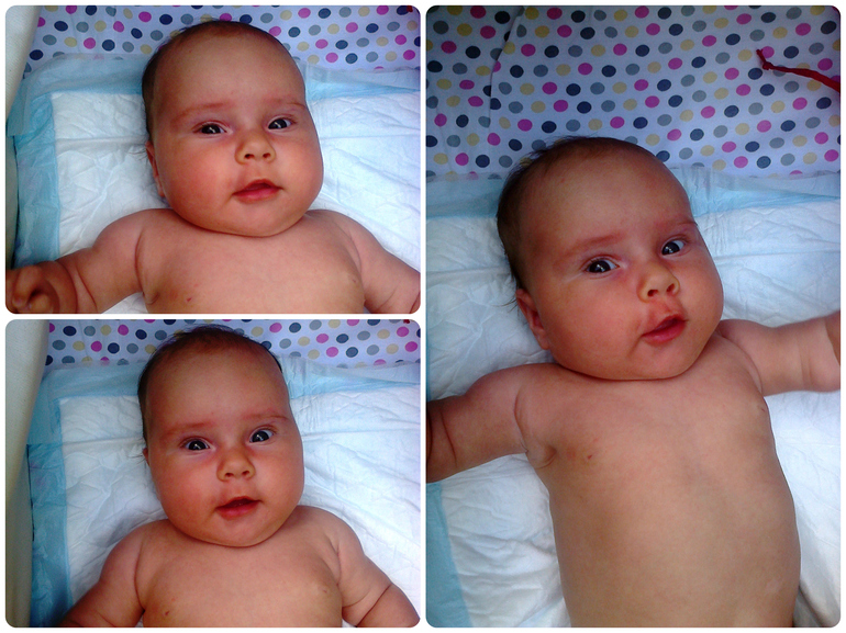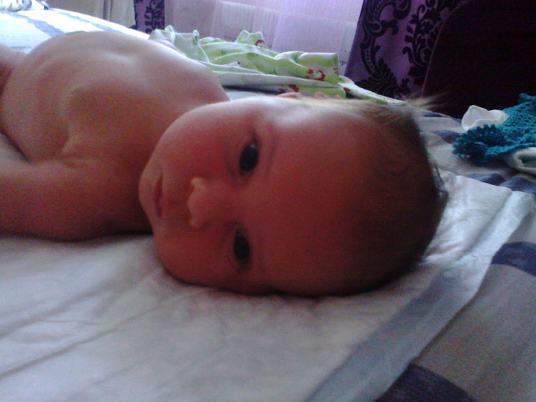 Очередная хвастушка - моя дочечка сделала подарок своей бабуле (моей маме) на ее день рождения 21.07.2014 первый раз перевернулась на животик! Причем я увидела, как она повернулась не до конца, уткнулась лицом в матрасик в коляске, испугалась, что задохнется и перевернула. А она снова переворачиваться - моя мама первая поняла, что это она переворачивается! А я добрая мать ей все испортила) В общем, пыхтела, скрипела, но перевернулась и даже ручку из-под себя вытащила! Первая наша серьезная умелка!