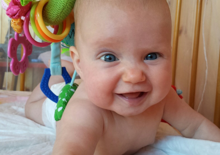 3. Первый раз засмеялась месяца в 2.5,во время игры в щечки-щечки-подбородочек, но регулярно стала смеяться буквально неделю назад, и то редко) когда зацеловываешь животик или сосешь подбородочек) и еще когда я икала, укачивая ее)))