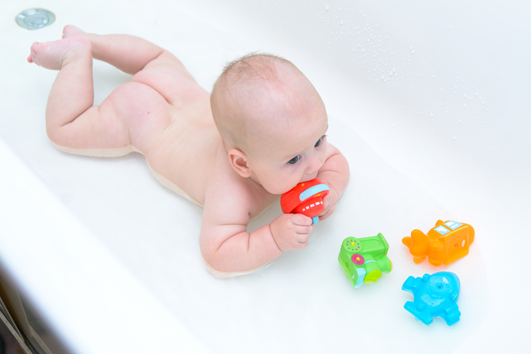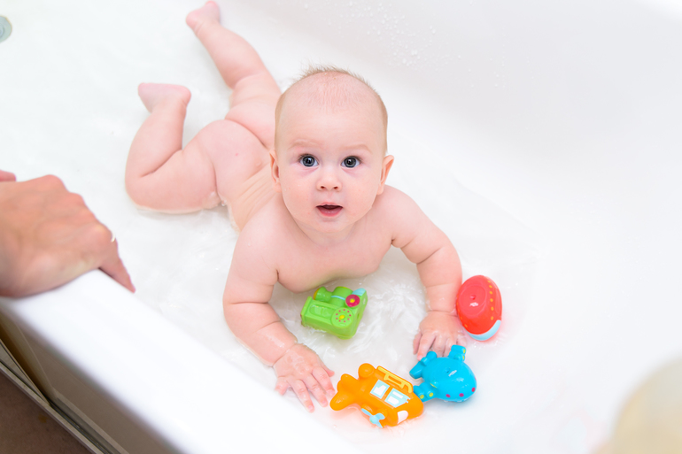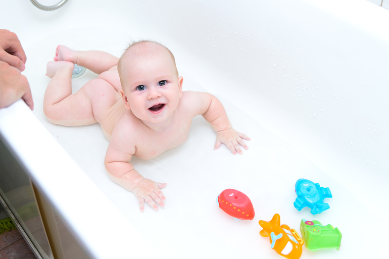 Это мы теперь так купаемся. Т.к купать в полной ванне вообще не вариант - сын изгибается и выкручивается, а в круге умудряется нырять в низ головой, а на улице жара и водные процедуры хочется как то участить, пришлось выкручиваться. Наливаем совсем немного прохладной водички, кидаем туда игрушки и сына - все довольны и счастливы![]()