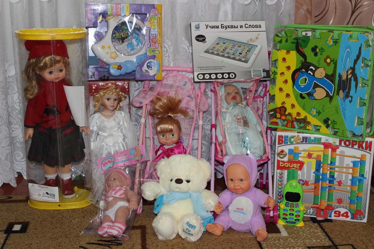 В основном дарили кукол и деньги. в итоге мы имеем две коляски и много кукол, почти все они поют или танцуют. Ночник проектор который поет песенки и рассказывает сказки. Веселые горки Насте особо понравились.Мы сами ей подарили качалку прыгалку два в