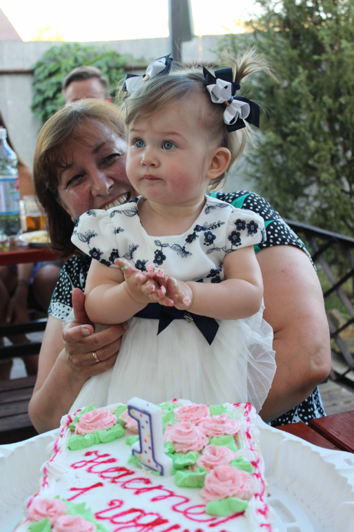А еще у нас был торт из прошлого, такой как раньше были, с мокрым бисквитом не очень вкусный и некрасивый, но с надписью. Ничего другого в нашей глуши не найти.Поэтому Настя и полезла в него руками, думала может хоть какая то из него польза будет.А свечку под шумок бабушка задула.