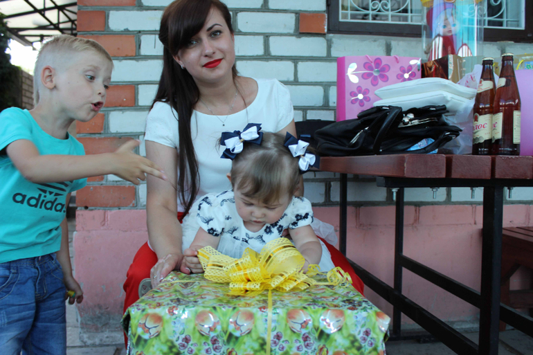 Потом пришло время разворачивать подарки,процесс имениннице понравился. Порадовали ее также и подарки, а еще больше бантики и обертка.