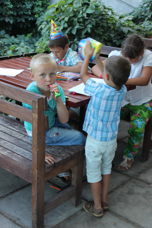 Первым заданием после еды у малышей была открытка для именинницы, все с удовольствием рисовали.Сотворили смешные детские рисунки, подрастут я им покажу.