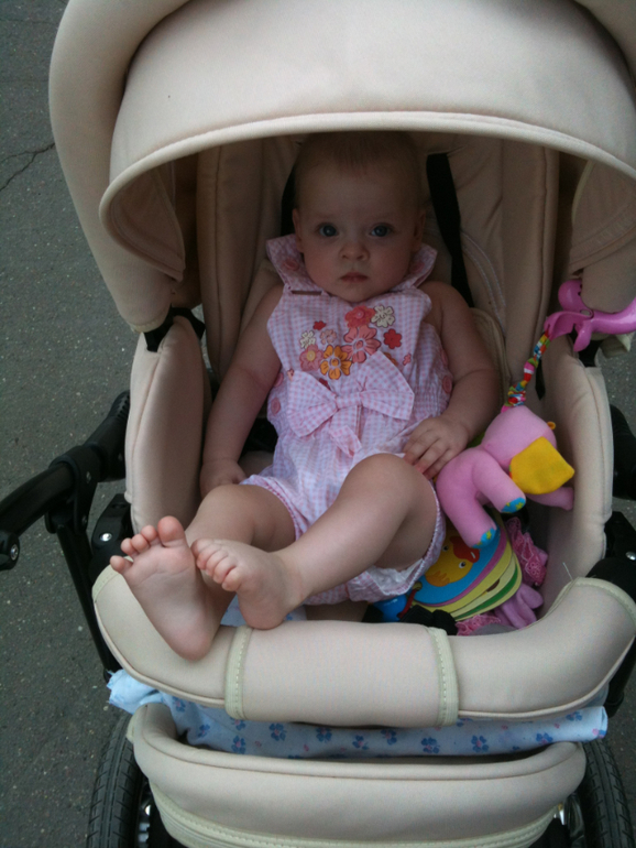 Ходили сегодня к врачу и теперь мы ростом ого-го-го 69 см! А вес у нас хромает всего 6660 (+345 г) ((( Слова врача: "Рост зашкаливает, а по весу не догоняете. Кормите побольше кашей, хотя при такой жаре вряд ли она будет ее есть." Ну, ничего зато мы стройные и длинноногие