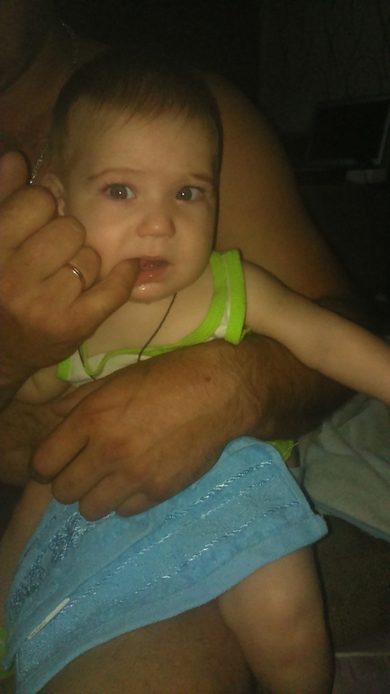 Кушаем почти все,каши,творог,мясо,овощи,фрукты,соки,молоко козье и вообще все,что лежит на столе надо попробовать, но больше всего мы любим жевать папин палец,ибо зубы лезут где -то внутри,наружу не собираются пока но мы все равно активно жуем мамин подбородок и щеку,пусть тоже почувствует всю прелесть.