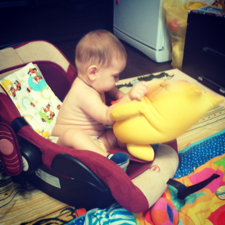 Мы росли росли и научились вставать на четвереньки, почти ползать, почти сидеть. Ходим в ходунках, даже бегаем:-) чувствую меня ожидает интересный седьмой месяц в плане умелок:-)