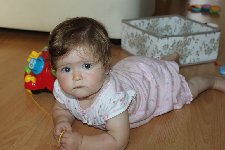 - стала ползать на четвереньках по всех квартире, правда до кухни пока не доползла... ааа, теперь точно мыть надо каждый день полы...