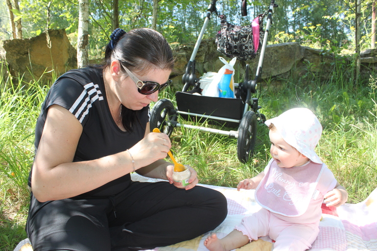 На два дня приезжала Сашка (перерыв был между сборами) Анюта Сашку не забыла, узнала. C таким она обожанием на Сашку смотрит ну и Санька конечно очень по сестренке скучает, каждый раз спрашивает, что у Анютки нового, и огорчается что этого не видит. Эти два дня провели вместе, устроили пикничок, ездили в парк гулять.