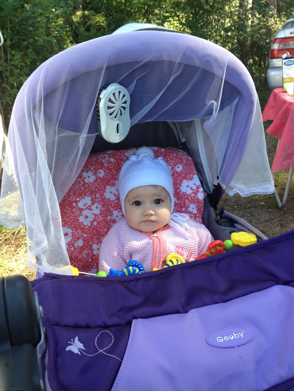До места (искусственный водопад у нас в области) добирались около часа, большую часть которого Эля благополучно проспала. Когда приехали, все оказалось совсем не так радужно как мы себе представляли. С тех пор, как мы были там последний раз, это место уже успели огородить, разровнять площадку перед водопадом, засыпать ее всю щебенкой и наставить кучу беседок по кругу. И конечно же, брать за все это плату. Ну что ж, раз приехали, будем довольствавоться тем что есть. Быстренько разбили палатки, накрыли на стол. Элина все это время сидела в коляске и рассматривала все вокруг.