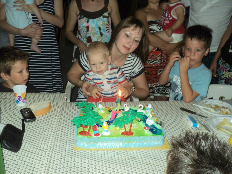 Отмечали мы на фабрике моего мужа, по греческим меркам очень скромно, всего планировалось 20 человек)). Посидели, на мой взгляд, душевно, тортик был красивый и очень-очень вкусный, жаль только, что фоток у нас осталось мало, нам с мужем было не до этого, а больше никто не фотографировал. Спели Темке поздравлялку на двух языках, на русском и греческом. Он немного обалдело крутил головой, но суматоха вокруг его персоны ему понравилась)))