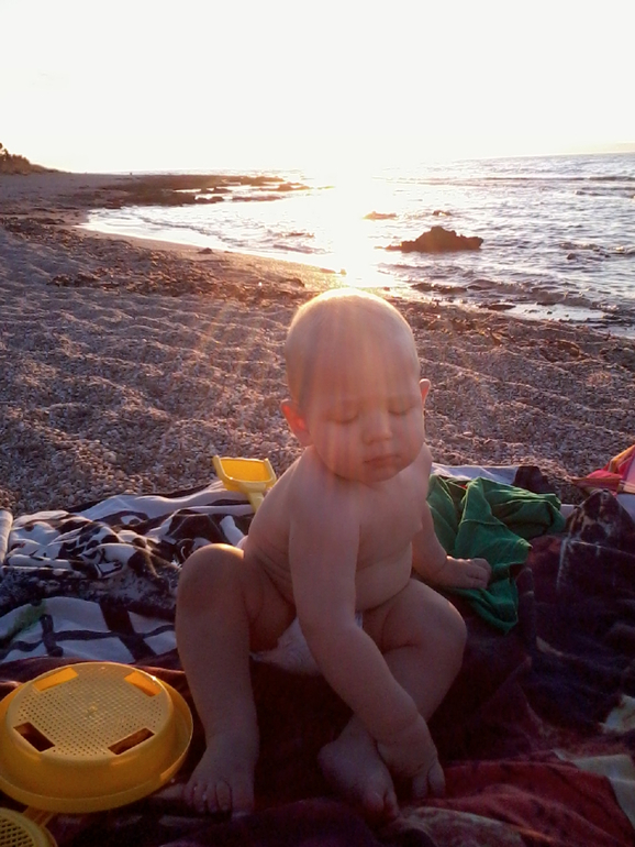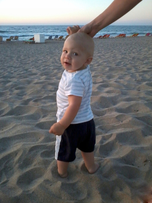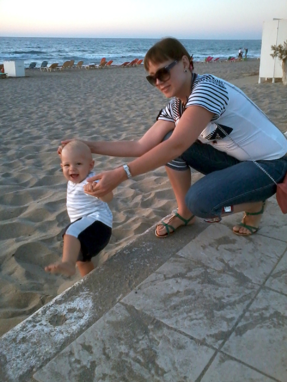 За пару недель до ДР, ходим по пляжу, массируем песком стопы))