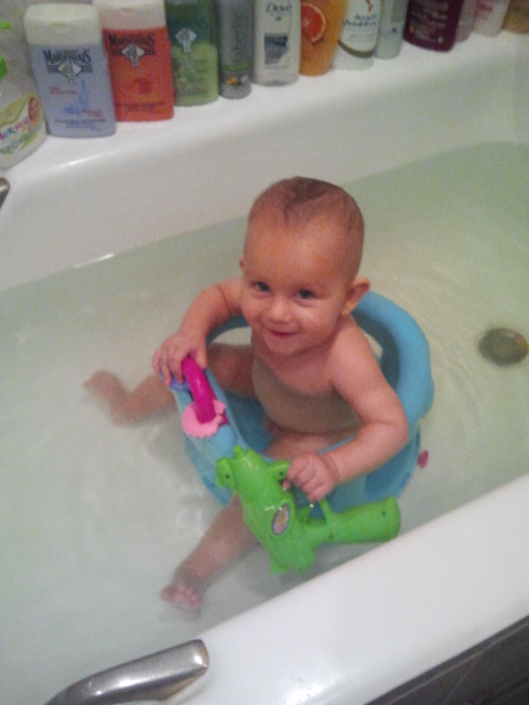 Надо тоже, наверное, стульчик купить... а то мы все стоя и очеь быстро моемся))) а сынуле очень вода нравится... Ничего, кстати, плохо в долгом купании не вижу)))