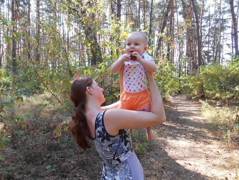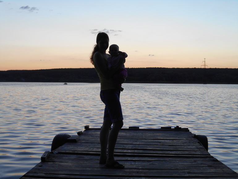 Грудным молоком кормлю утром после сна, днём перед сном и вечером перед сном. Вообще, перешли на один дневной сон. Когда было два, то жизни вечером не было. Она могла не спать до часу ночи! Теперь максимум в 11 вечера засыпаем. А бывают счастливые дни, и ложимся в 9. Большим счастьем стало для меня прекращение ночных кормлений!!!! Спим и не кушаем больше! Но радость омрачилась сначала долгими укладываниями на ночной сон, а потом приходом ко мне "этих" дней. Блин! Я совсем не скучала за ними полтора года ( При чём пришли в самый неподходящий момент. Когда мы на выходных решили съездить на природу. Тем более в субботу 16 чиса у нас с мужем годовщина свальбы - 3 года! А в воскресенье 17 - у Ксюшки 11 месяцев. Но всё-таки мы съездили на так называемый уикенд за город. Ксюха вела себя отлично! (за исключением укладываний на ночь). Игралась в своём личном бассейне и даже в нём плавала в реке. Пособирала шишек в хвойном лесу и потанцевала на местной дискотеке ))