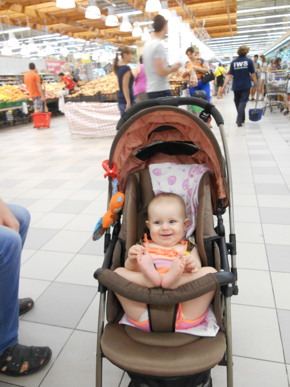 Я переживала, чтобы не испугалась. Но Ксюха была рада перемене обстановки. Всё рассматривала и искренне радовалась. А в гипермаркете был полный восторг. Во-первых, ей все улыбались и подмигивали. Она в ответ строила глазки, делала "привет-пока" и ладушки.