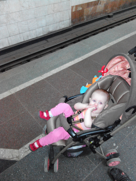 За последний месяц мы в основном умирали от ужасной жары. А в выходные я капризничала, что сидеть дома уже надоело в край. Как-то на выходных мы решились взять Ксюшку с собой в поход в магазин (обычно она с бабушкой оставалась дома, а мы с мужем как ужаленные бегали по отделам и летели стремглав домой). Поехали в гипермаркет, при чём не самый ближний к нам. В итоге, в первый раз Ксюша познакомилась с метро