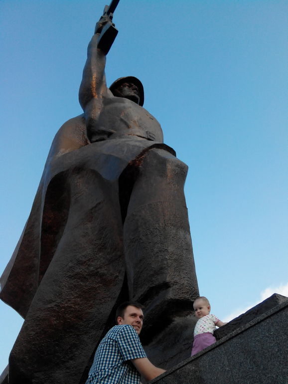 Сейчас она стала многое замечать. Вот например. У нас на проспекте стоит огромный памятник Солдату-Освободителю. Раньше она на него внимание вообще не обращала. А вот ехали недавно - и она его увидела )) Даже захотела рассмотреть и потрогать