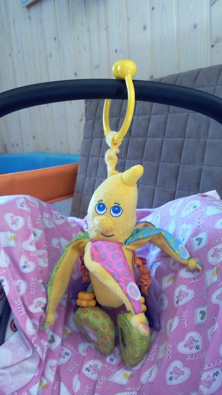 Подвеска на коляску тоже есть. Проблема в том, что ещё эти игрушки такие дорогие! Я в ленте смотрела, там на крепеже игрушка 450 рублей стоит!!!